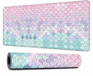 Y YIHANGBEST Mermaid Scales Gaming Mouse Pad Geometric Gradient Purple Pink Blue Aqua Teal Glare Large Mousepad Desk Keyboard Mat for PC,Home,Office 35.4"X15.7"