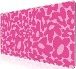 L-SPOUTTO Pink Gaming Mouse Pad Large Desk Mat XXL Mouse Pad Non-Slip Rubber Base Keyboard Pad Waterproof Desktop Mat for Laptop Computer Work Game Home Office-Hot Pink Daisy