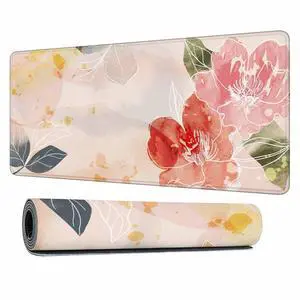 Y YIHANGBEST Floral Watercolor Art Mouse Pad Desk Mat Pink Flower and Green Leaf Large Gaming Mousepad for Keyboard PC.Home,Office 35.4"X15.7"