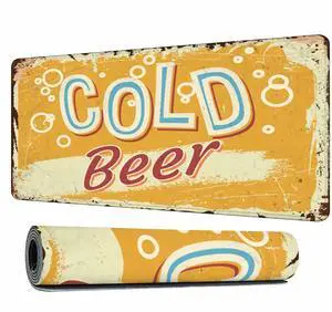 Y YIHANGBEST Cold Beer Gaming Mouse Pad Retro Style Vintage Design Large Full Desk Keyboard Mousepad for Computer,Home,Office 35.4"X15.7"