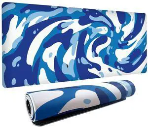 L-SPOUTTO Blue Desk Mat Gaming Mouse Pad XXL Large Mouse Pad Non-Slip Rubber Base Keyboard Pad Waterproof Desktop Mat for Laptop Computer Work Game Home Office-Blue Wave