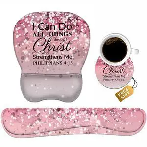 Ergonomic Mouse Pad Wrist Support and Keyboard Wrist Rest Set with Coasters, Non-Slip PU Base, Easy Typing & Pain Relief for Computer Laptop Home Office, Bible Verse Phil 4-13