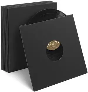 Facmogu 20PCS 10in Black Paper & Plastic Poly-Lined Record Inner Sleeves, 110gsm LP Record Parper Covers Phonograph Record Storage Sleeves, Vinyl Record Sleeve Protectors, Acid Free Paper Album Covers