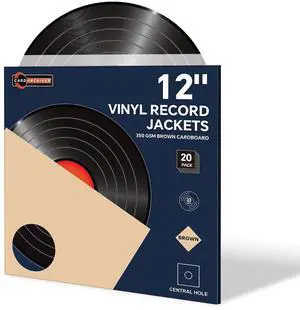 20PCS 12 Inch Brown Vinyl Record Jackets, Thick Cardboard Sleeves with Center Hole, Blank LP Album Covers for 33 RPM Storage & Organization, 350gsm LP Jackets for Record Storage