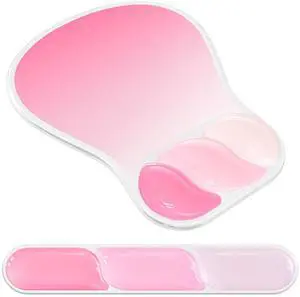 Ergonomic Mouse Pad with Wrist Rest& Keyboard Wrist Rest, Wrist Rest for Computer Keyboard, Pain Relief, Non-Slip Gel Base, Mousepad Wrist Support for Gaming, Office, Rose Pink Gradient