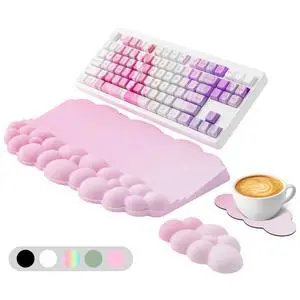 Wrist Rest with Keyboard Stand, Ergonomic Computer Wrist Support Pad, Cloud Keyboard Riser Holder with Wrist Pad, Memory Foam Desk Cushion, Palm Hand Typing for Office Home School-Pink