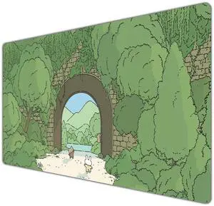 Japanese Green Forest Gaming Mouse Pad Anime Tree Woodland Desk Mat XL Large Cute Aesthetics Women Office Desk Decor Laptop Computer Keyboard and Mouse Mat with Stitched Edges Matt 31.5x11.8