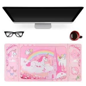 PERFECTSIGHT Cute Unicorn Desk Pad Kawaii Dream Desk Mat, Large Gaming Mouse Pad, Funny Deskmat Mousepad, Laptop Keyboard Pad Office Home Decor for Women Girls, Light Pink