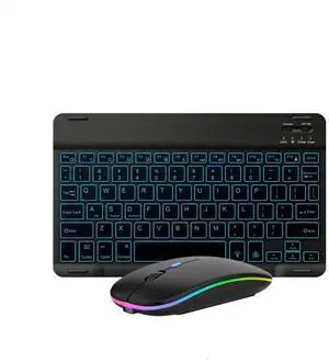 Ultra-Slim Lightweight Bluetooth Keyboard and Mouse Portable Mini Wireless Keyboard Rechargeable 7-Color Backlit for Apple iPad iPhone,Tablet iPhone Smartphone iOS Android Windows,Black