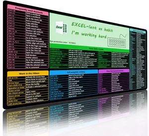Get Excel Pad,Excel Shortcut Mouse Pad Desk Mat,Large Excel Cheat Sheet Spreadsheet Keyboard Mats Mousepad,Water-proof Non-Slip Stitched Edge,Excel Learning Essentials,31.5*15.7 inch,Black