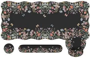 Desk Mat Set,Large Mouse Pad with Wrist Rest,Ergonomic Keyboard Wrist Support for Women,Girly Floral Computer Mat with Scalloped Edges,Non-Slip Desk Pad Home Office Gaming (Black)