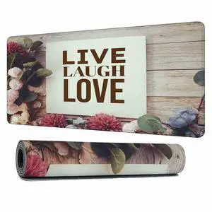 Y YIHANGBEST Live Laugh Love Large Gaming Mouse Pad Flower Green Leaf Decoration Long Mousepad Non-Slip Rubber Base Keyboard Mat for Desk,Office,Home 35.4"X15.7"