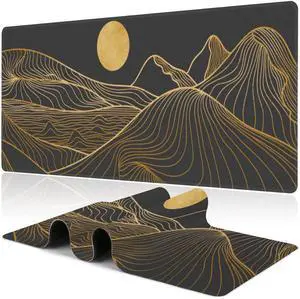 Abstract Golden Mountain Desk Mat,Large Gold Line Art Gaming Keyboard Mouse Pad,Non-Slip Rubber Base Desk Pad Thick Stitched Edges Waterproof Mousepad Mouse Mat 31.5"x11.8"