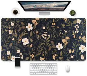 Floral Desk Mat Dark Vintage Aesthetic Desk Pad Flower Plant Black Extended Mouse Pad Large Gaming Mousepad XXL Laptop Computer Mouse Keyboard Mat 31.5 x 15.7 in for Office Desk Decor