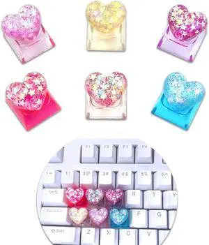 6PCS Bling Heart Custom Keycaps - Cute Artisan Keycap Replacement Key for Cherry MX Mechanical KeyboardsOEM Decoration Profile for Computer Gaming KeyboardsArtisan ESC OEM Key Cap