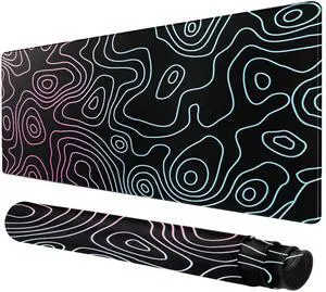 KEHIPI Gaming Mouse Pad, Non-Slip Rubber Base, Stitched Edge Mouse Pad for Office, Home, Black Terrain Line, Extra Large 31.5x11.8 Inch