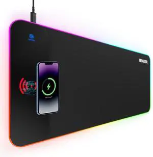 RGB Gaming Mouse Pad with 15W Wireless Charger, 17 Lighting Modes LED Mouse Mat, Extra Large 27.6"x11.8" Extended Mouse Pad with Non-Slip Base, Type-C Plug & Play, for Keyboard, Mouse, and Phone