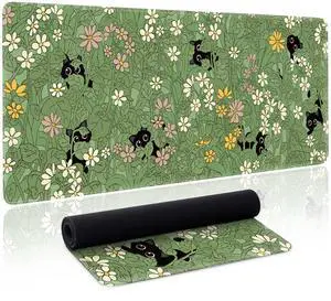 Gaming Laptop Mouse Pad, Big Mice Pads PC Keyboard and Non-Slip 31.5 x 11.8inches 3mm Thick Green Plant Cat