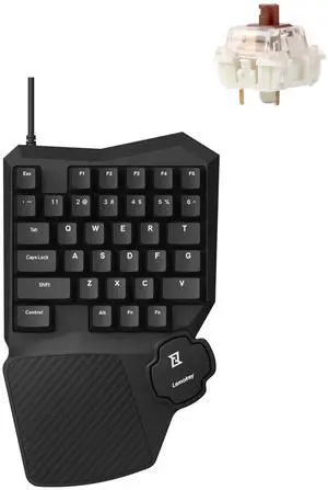 X0 One Handed Gaming Keyboard, 35 Keys North-Facing Red Backlit Wired QMK Keypad, Silicone Palm Rest, Shine-Through Double-Shot Keycaps with Tactile Brown Mechanical Switch for Windows/Linux