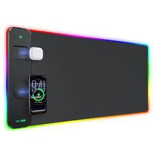 2-in-1 RGB Gaming Mouse Pad with Wireless Charging, 31.5"x15.8" Large, 24 Light Effects, Non-Slip Base, Waterproof Ultra-Smooth Surface, No Adapter
