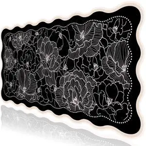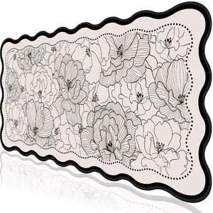 L-SPOUTTO Black Floral Mouse Pad,Vintage Aesthetic Scalloped Desk Mat XXL Large Gaming Mousepad,35.4x15.7in Non-Slip Keyboard Pad Waterproof Desktop Mat for Laptop Computer Work Game Home Office-Peony