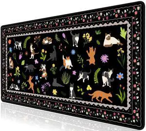 L-SPOUTTO Cute Cats Desk Mat for Keyboard and Mouse,Boho Floral XXL Large Mouse Pad,35.4x15.7in Non-Slip Rubber Base Keyboard Pad Waterproof Desktop Mat for Laptop Computer Work Game Home Office-Black