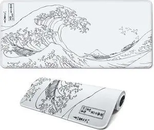 Mouse Pad Gaming - Desk Mat for Keyboard and Mouse - Kanagawa Large Mouse Pad for Desk Japanese Sea Wave Mousepad (31.5 x 11.8inch) with Non-Slip Base Desks Pad Mat for Game Office and Home