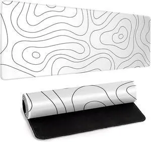 White Large Gaming Mouse Pad Desk Pad Topographic Map Big Keyboard Mat 31.5x11.8inch Computer Mousepad with Stitched Edge Non-Slip Rubber Base