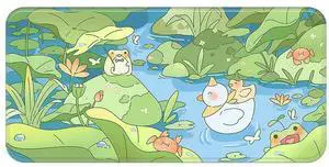 PERFECTSIGHT Cute Frog Desk Mat Kawaii Green Plant Floral Desk Pad, Large Gaming Mouse Pad, Funny Deskmat Mousepad, Anime Laptop Keyboard Pad Office Home Decor Accessories for Women Girls, Pond