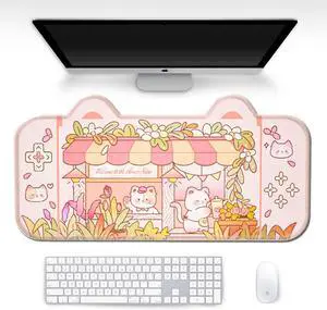PERFECTSIGHT Cute Cat Desk Mat Kawaii Flower Store Desk Pad, Pink Switch Large Gaming Mouse Pad, Funny Florists Deskmat Mousepad, Anime Laptop Keyboard Pad Office Home Decor for Women Girls, Kitty