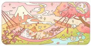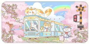 PERFECTSIGHT Cute Kitty Mouse Pad Kawaii Cat Large Gaming Mouse Pad Waterproof Non-Slip Durable Large Extended Keyboard Mouse Pad with Stitched Edges for Office, Sakura Train