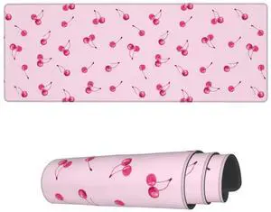 Famame Laptop Mouse Pad Little Cherry Seamless Desk Mat with Stitched Edges 31.5X 11.8 inch Non-Slip Large Keyboard Rubber Writing Table Mat for Office Home