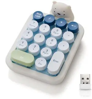 Lomiluskr Cute Wireless Numeric Keypad with Silicone Bear, Colorful Round Keycaps, 2.4G USB Wireless Connection, Portable Financial Accounting Numpad Number Keyboard, Suitable for PC, Laptop (Blue)