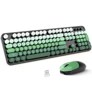 Wireless Keyboard and Mouse Combo, Full Size 2.4G Plug and Play Typewriter Retro Round Computer Keyboard and Mouse Set for Windows, Computer, Desktop, PC, Notebook - (Black Green Gradient)