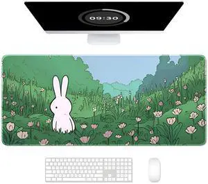 Auhoahsil Ultra Large Gaming Mousepad, XXL Extended Full Size Desktop Matt for Keyboard, Laptop & Computer, 35.5 x 15.7 in, Anime Bunny Green Grass