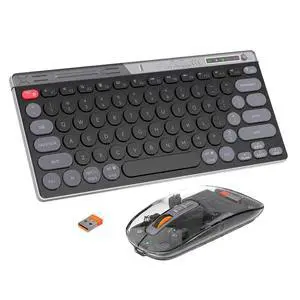 FMOUSE Wireless Keyboard and Mouse Combos - Dual Bluetooth & 2.4GHz USB Receiver, Transparent Mouse, Compact Slim Stylish for Laptop/ipad/Mac/Office - Black