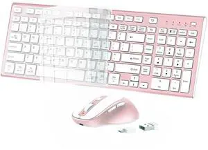 Wireless Keyboard and Mouse, Rechargeable USB C Combo Silent Quiet Compact Full Size Flat with Number Pad Soft Cover for Mac MacBook iMac Windows PC Laptop Computer Office - Pink & Rose Gold