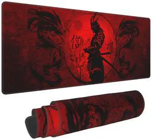 Japanese Samurai Cool Anime Red and Black Dragon Mouse Pad XL Extended Desk Mat, Non Slip Rubber Base Stitched Edge Gaming Pc Desktop Large Mice Pad,31.5 x 11.8 Inch