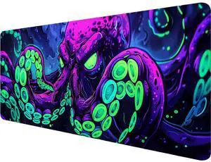 Octopus Desk Mat Gaming Mouse Pad Neon Cthulhu Monster Cool XL Mouse Pad Large Mousepad Extended Laptop Keyboard Mat Gaming Desk Pad Mouse Mat Office Computer Keyboard Laptop Home 31.5"x11.8"