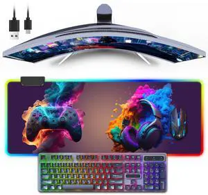 RGB Gaming Mouse Pad, Large Mousepad with LED Light 13 Light Modes Touch Control Extended Soft Computer Keyboard Mat Pad, Desk Mat with Non-Slip Rubber Base for MacBook Laptop(31.5X11.8, Game Handle)