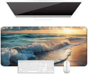 BFDHGQZC Desk Mat Mouse Pad Large Mouse Pad Sunset Beach 23.62x11.8 Desk Rubber Base Mousepad with Stitched Edges Keyboard Mouse Mat Big Desk Pad for Work, Game, Office, Home + Small Mouse Pad