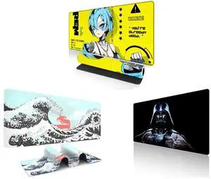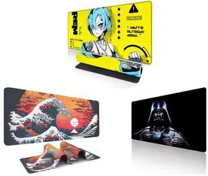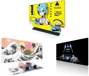 Alpha Fit Anime Gaming Mouse Pad XXL (35.4" x 15.7") - Cyberpunk Blue Haired Girl - Large Mouse Pad Extended - Extra Large Gaming Mouse Pads Yellow Caution Style - 07 and Alpha Fit Black & White Great Wave Gaming Mouse Pad XXL (35.4" x 15.7") - Monochrome Ink Wash Japanese Art Desk Mat - Minimalist Setup with Stitched Edges and Alpha Fit Starwar Gaming Mouse Pad XXL (31.5" x 11.8") - Star Wars Themed Large Mouse Pad - Extra Large Gaming Mouse Pads with Non-Slip Rubber Base & Stitched Edges for Sci-Fi Setup
