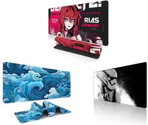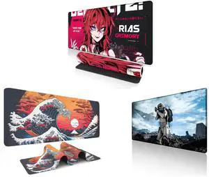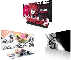Alpha Fit Anime Gaming Mouse Pad XXL (35.4" x 15.7") - Crimson Red Haired Demon Girl - Large Mouse Pad Extended - Extra Large Gaming Mouse Pads Gothic Waifu Style - 01 and Alpha Fit Classic Great Wave off Kanagawa Gaming Mouse Pad XXL (35.4" x 15.7") - Traditional Blue Japanese Art Desk Mat - Non-Slip Rubber Base for Office and Alpha Fit Star Wars Gaming Mouse Pad XXL (31.5" x 11.8") - Stormtrooper Shatter Black & White - Large Mouse Pad Extended - Sci-Fi Galaxy Empire Desk Mat 12