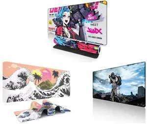 Alpha Fit Anime Gaming Mouse Pad XXL (35.4" x 15.7") - Blue Punk Graffiti Girl - Large Mouse Pad Extended - Extra Large Gaming Mouse Pads Loose Cannon Style - 03 and Alpha Fit Classic Great Wave off Kanagawa Gaming Mouse Pad XXL (35.4" x 15.7") - Traditional Blue Japanese Art Desk Mat - Non-Slip Rubber Base for Office and Alpha Fit Star Wars Gaming Mouse Pad XXL (31.5" x 11.8") - Stormtrooper Shatter Black & White - Large Mouse Pad Extended - Sci-Fi Galaxy Empire Desk Mat 12