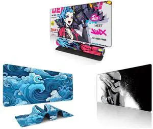 Alpha Fit Anime Gaming Mouse Pad XXL (35.4" x 15.7") - Blue Punk Graffiti Girl - Large Mouse Pad Extended - Extra Large Gaming Mouse Pads Loose Cannon Style - 03 and Alpha Fit Black & White Great Wave Gaming Mouse Pad XXL (35.4" x 15.7") - Monochrome Ink Wash Japanese Art Desk Mat - Minimalist Setup with Stitched Edges and Alpha Fit Star Wars Gaming Mouse Pad XXL (31.5" x 11.8") - Stormtrooper & Star Destroyer Battlefield Art - Large Mouse Pad Extended - Galactic Empire Gaming Desk Mat 34
