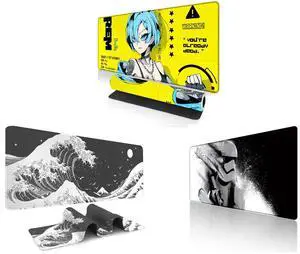 Alpha Fit Anime Gaming Mouse Pad XXL (35.4" x 15.7") - Cyberpunk Blue Haired Girl - Large Mouse Pad Extended - Extra Large Gaming Mouse Pads Yellow Caution Style - 07 and Alpha Fit Classic Great Wave off Kanagawa Gaming Mouse Pad XXL (35.4" x 15.7") - Traditional Blue Japanese Art Desk Mat - Non-Slip Rubber Base for Office and Alpha Fit Star Wars Gaming Mouse Pad XXL (31.5" x 11.8") - Stormtrooper Shatter Black & White - Large Mouse Pad Extended - Sci-Fi Galaxy Empire Desk Mat 12