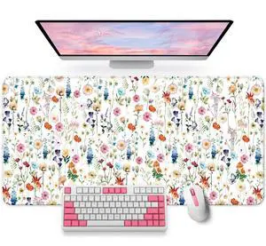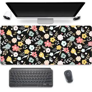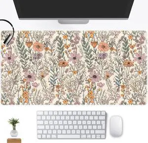 Large Mouse Pad for Desktop, Cute Desk Mat Pad Protector for Work & Gaming, Aesthetic Pretty Anti-Slip Laptop Blotter Cover for Office School Home Supplies, Wildflowers, 31.5" x 11.8"