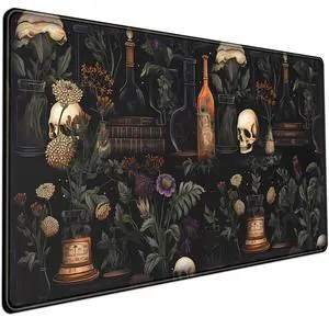 Vintage Aesthetic XL Extended Large Gaming Mouse Pad - Black Academia Mystical Green Plant Design - Computer Laptop Keyboard and Mouse Mat Desktop Protector - 31.5 x 15.8 in