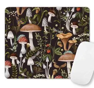 Cute Mushrooms Mouse Pad, Berries and Bugs Mousepad, Square Natural Trendy Print Mouse Pad, Perfect Design for Gaming, Computer, Office, Laptop, Office Work, Non-Slip Rubber Mouse Mat, 9.5x7.9 inch