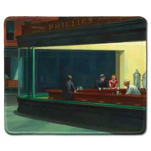 Art Mousepad - Natural Rubber Mouse Pad Printed with Nighthawks by Edward Hopper - Stitched Edges - 9.5x7.9 inches